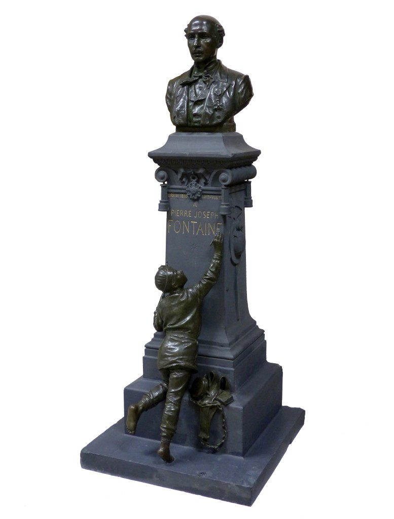 Enfin, les sculptures monumentales de scientifiques ou de techniciens ayant développé quelque invention utile peuvent être agrémentées de personnages secondaires illustrant la reconnaissance de la société : c’est un galibot reconnaissant qui accompagne le buste de l’inventeur sur la maquette du monument à Pierre Joseph Fontaine, sculptée par Corneille Theunissen (1863-1918).