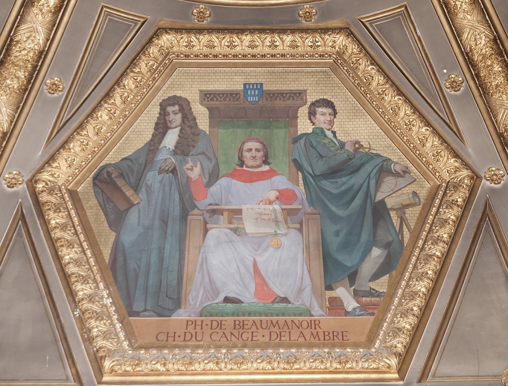 Ce tableau est conçu dans un ensemble destiné à célébrer les grandes personnalités picardes saluées par la France (poètes, artistes, scientifiques, patriotes). Les portraits des personnages sont accompagnés de l’allégorie de la Science, peinte en grisaille entre les médaillons. Les savants représentés sont : Philippe de Beaumanoir (jurisconsulte), Charles Du Cange (historien, linguiste, philologue) et Jean-Baptiste Delambre (mathématicien, astronome)